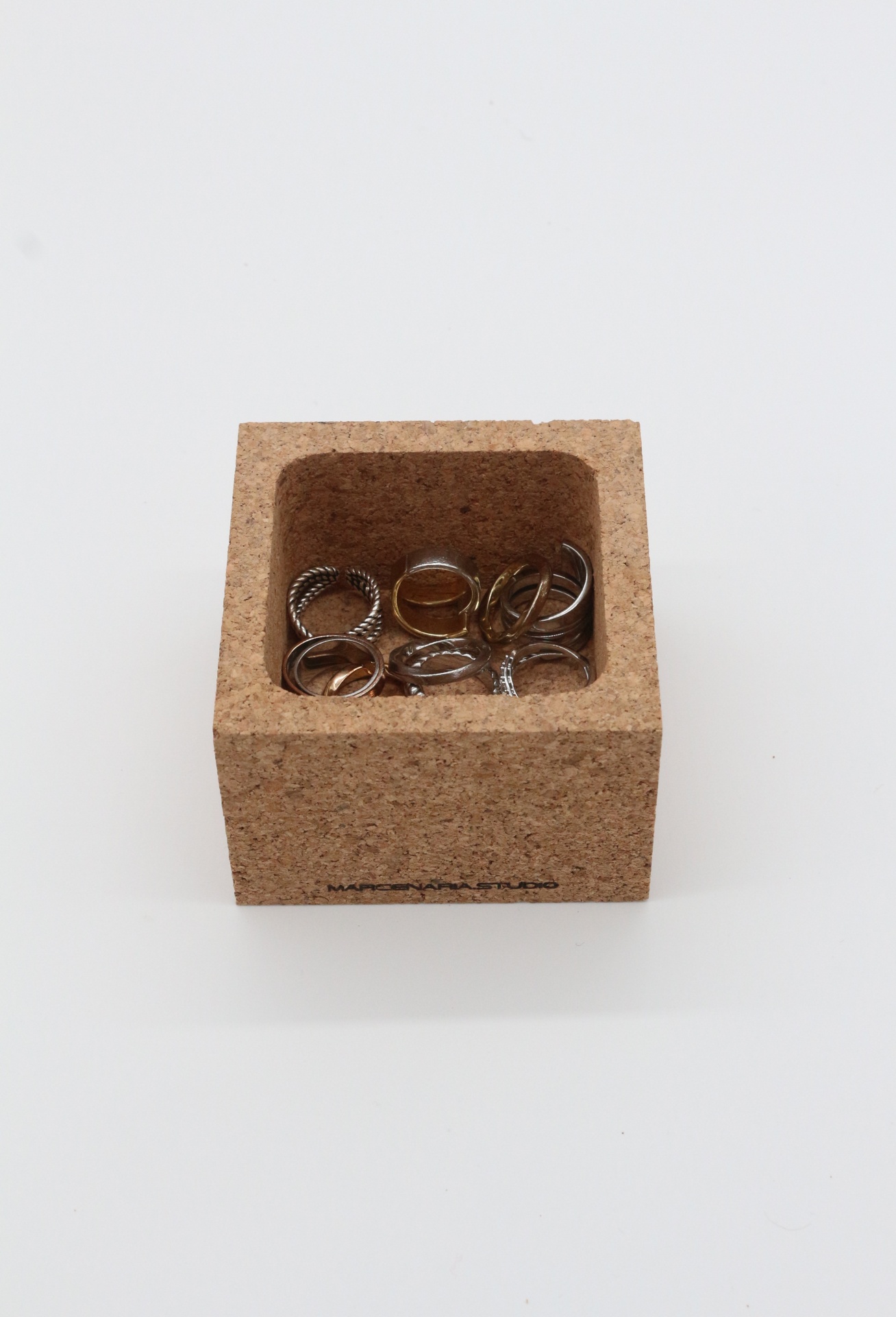 A Caixa de Cortiça Quadrada da Marcenaria Studio é um acessório perfeito de organização, dando um toque simples e agradável a qualquer espaço.